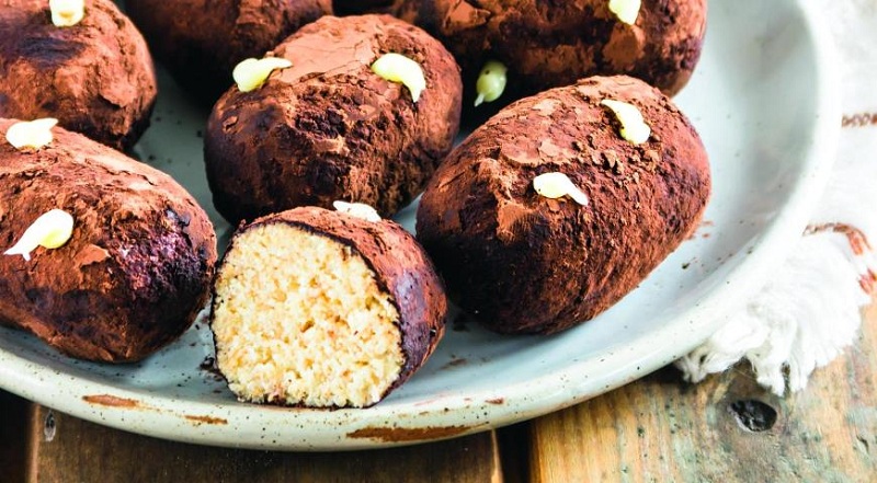Compoziția ar trebui să fie destul de groasă. Modelați prăjiturile în formă de cartofi și tăvăliți-le prin praful de cacao amestecat cu îndulcitor, apoi lăsați-le la frigider timp de 2 ore…