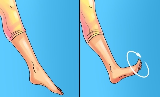 Pentru a realiza acest exercițiu trebuie să stați în picioare sau chiar în șezut și să ridicați un picior.Rotiți încet piciorul laba piciorului în mișcare circulară.Repetați acest lucru de 10 ori în sensul interior al piciorului și de 10 ori în sensul exterior pentru fiecare picior în parte.