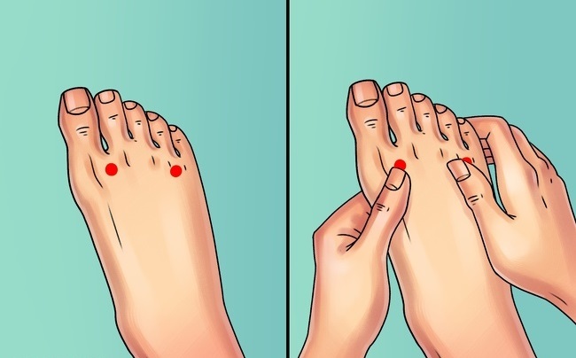 Dacă după o zi lungă aveți picioare dureroase, așezați cele două degete pe locurile din imagine și le masați ușor timp de până la 15 minute pentru relaxare ușoară și rapidă.Masajul picioarelor este realizat pe scara larga in intreaga lume.