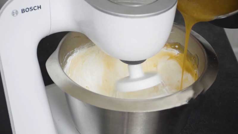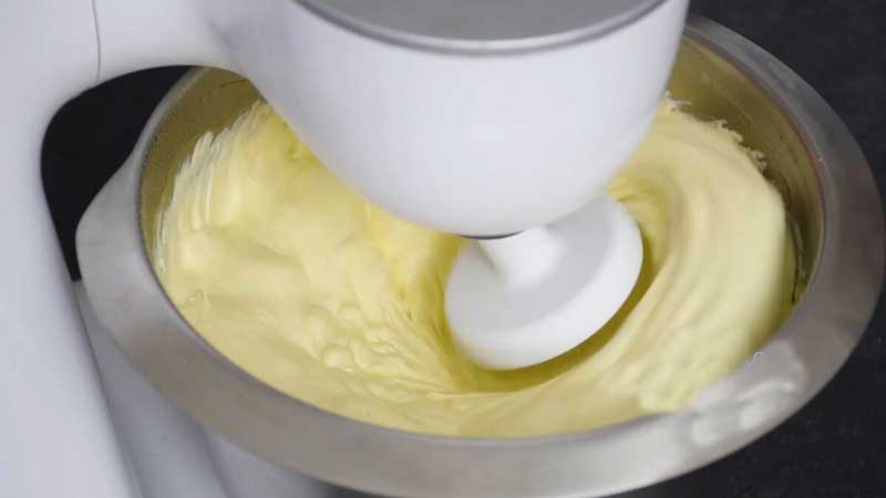 Continuăm să batem cu mixerul la viteză mare până când compozitia devine pufoasă.