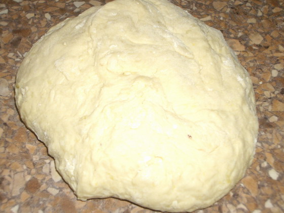 3. Adăugăm jumătate din cantitatea de făină și amestecăm până obținem un aluat moale și omogen. Ar trebui sa obtineti ceva foarte similar cu poza de mai jos.