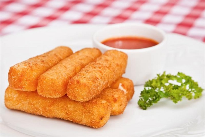 4. Pe masa de lucru, formăm bastonașele. Le dăm prin făină și le prăjim într-o tigaie încinsă cu ulei. Prăjim câteva minute, pe ambele părți, până se rumenesc frumos.