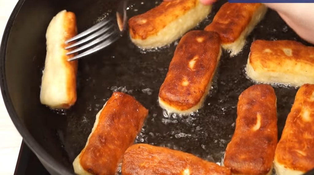 Prăjim batoanele într-o tigaie cu ulei încins, la foc mediu, până se rumenesc frumos.