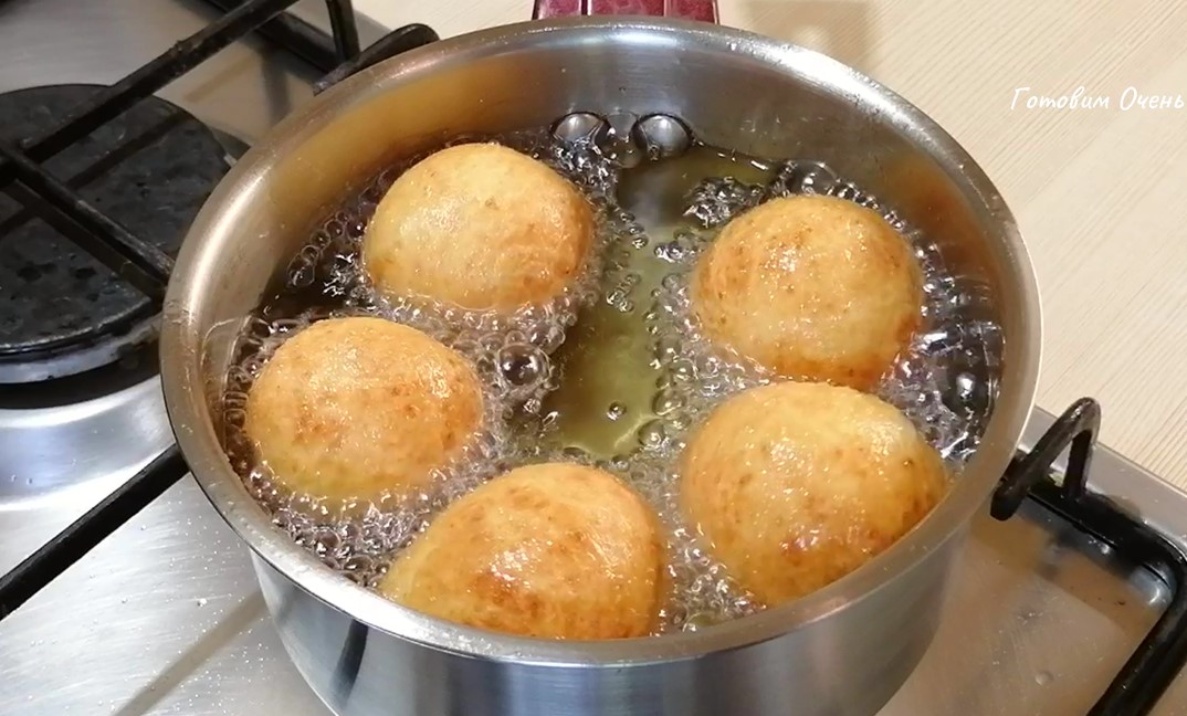 Într-o cratiță, turnați suficient ulei vegetal astfel încât biluțele, când sunt scufundate, să nu atingă fundul. Uleiul trebuie să fie bine încins.