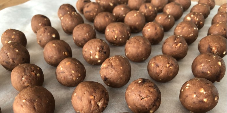 Din aluatul obtinut, formam mici bilute cu mainile. Punem bilutele de ciocolata in frigider pentru a se solidifica.