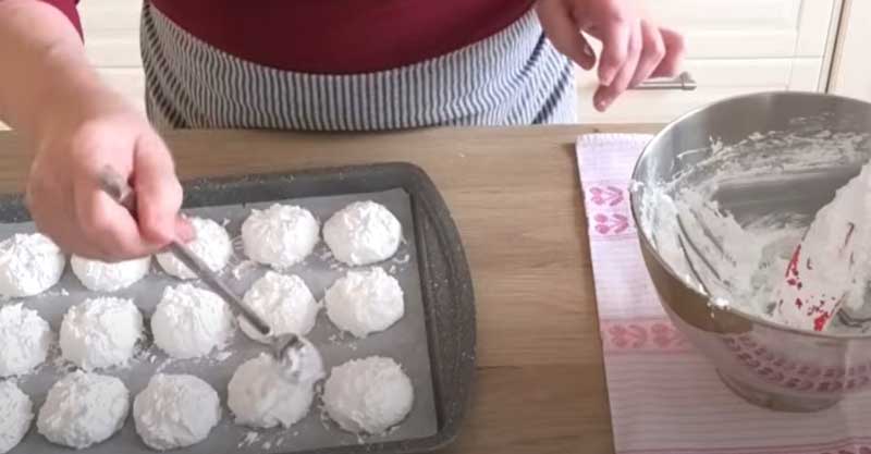 Adăugați fulgii de cocos și formați macarons, așezându-i pe o tavă acoperită cu hârtie de copt. coaceti-i în cuptor la 100°C timp de aproximativ 70-80 de minute.