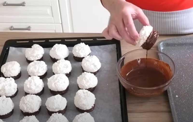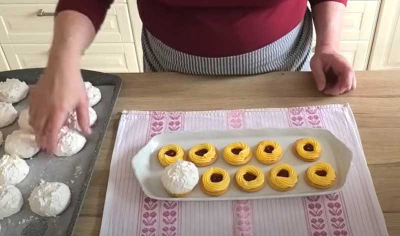 Biscuiți fragezi cu bezea de cocos, cremă de vanilie și ciocolată: se pregatesc ușor și sunt extrem de gustoși