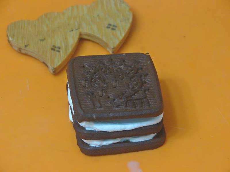 Continuă cu un al doilea biscuit înmuiat în lapte, apoi adaugă din nou cremă de vanilie. Repetă acest proces cu un al treilea biscuit.