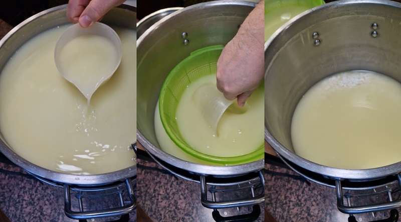 Dacă laptele este de fermă, trebuie pasteurizat la 65°C timp de 30 de minute pentru a elimina microorganismele nedorite. Laptele din magazin, marcat „proaspăt”, este deja pasteurizat.