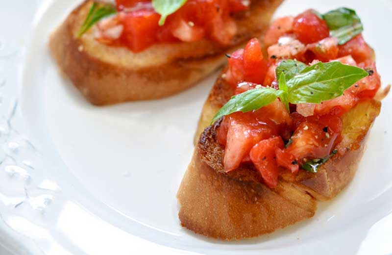 - Bagheta de paine se feliaza pe diagonala – feliile de paine trebuie sa fie cat mai lungi – se ung cu putin ulei de masline si se prajesc sau le puneti la cuptor pentru 5 minute