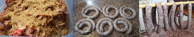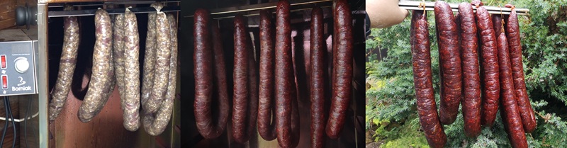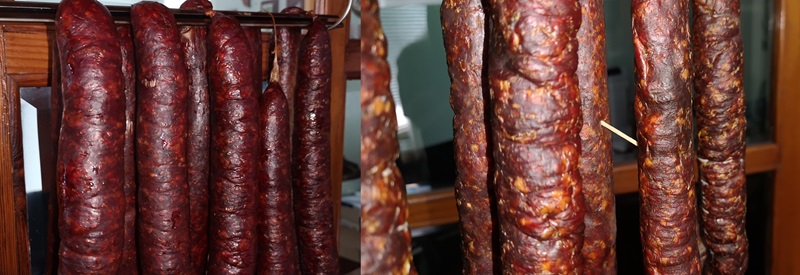 Totuși, scopul meu este obținerea unor cârnați uscați, așa că îi atârn pentru 1-2 zile la temperatura camerei, apoi îi mut din nou în frigider sau cămară rece la temperatura menționată anterior și îi las acolo aproximativ 2 săptămâni.