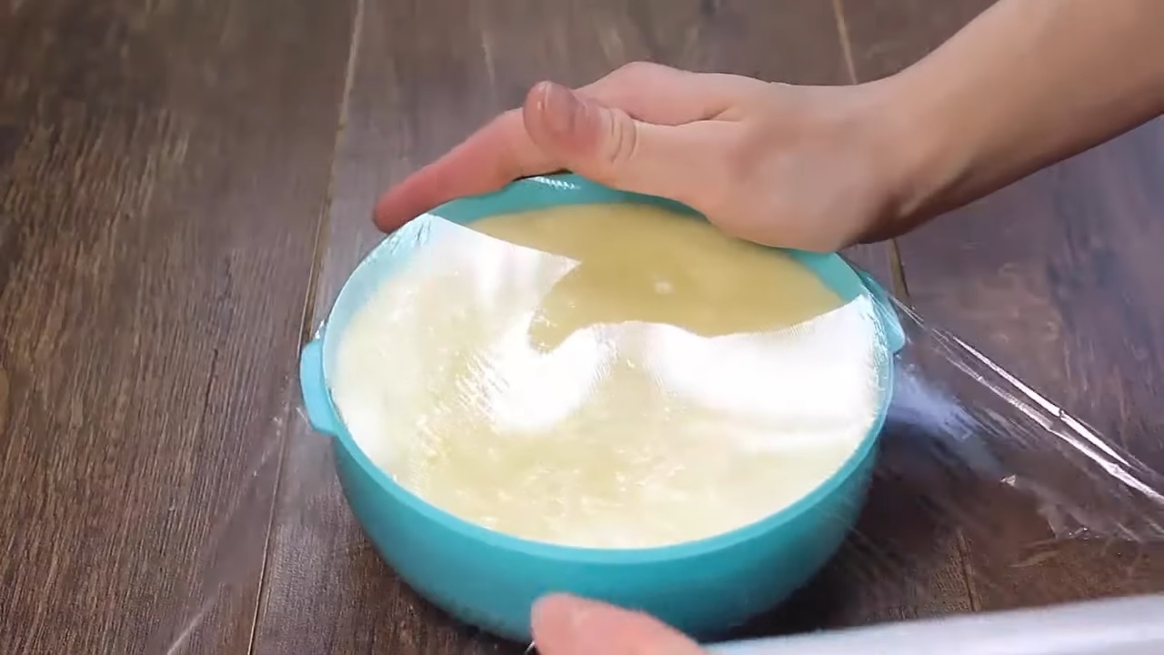 După cele 3 ore, răsturnăm brânza topită pe o farfurie.