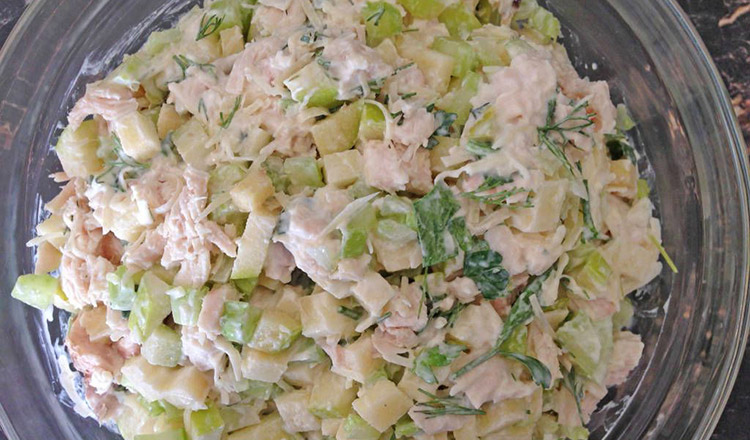 Salata din piept de pui – Cu toții avem acele rețete „de urgență” pe care le preparăm și sunt pe gustul întregii familii. Salata din piept de pui, cu maioneză este extrem de gustoasă și poate fi și sănătoasă, dacă înlocuiți maioneza clasică cu cea din iaurt.