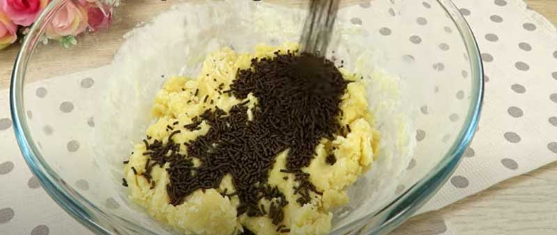 Încorporează fulgii de ciocolată în aluat.