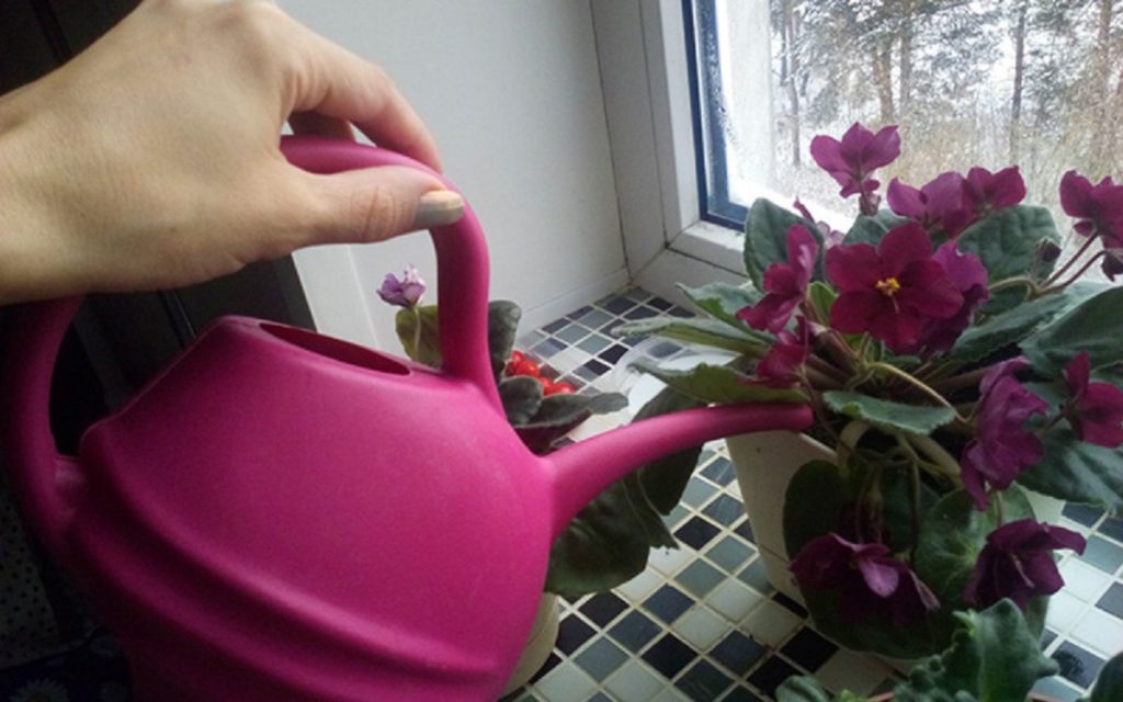 Pentru violete, pregătiți o soluție pentru irigare din 1 L de apă și 1 fiolă de vitamina B12.