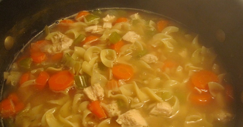 3. Condimentăm cu sare și piper, adăugăm 2-3 linguri de ulei și tăiețeii. Fierbem câteva minute fără să amestecăm. După acest interval de timp, supa este gata.