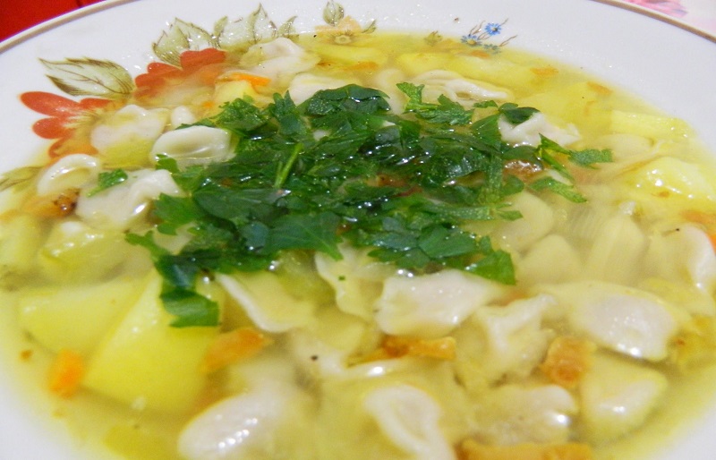 4. Adăugăm ceapa în supă, condimentăm, adăugăm verdeață și fierbem încă 20 de minute.