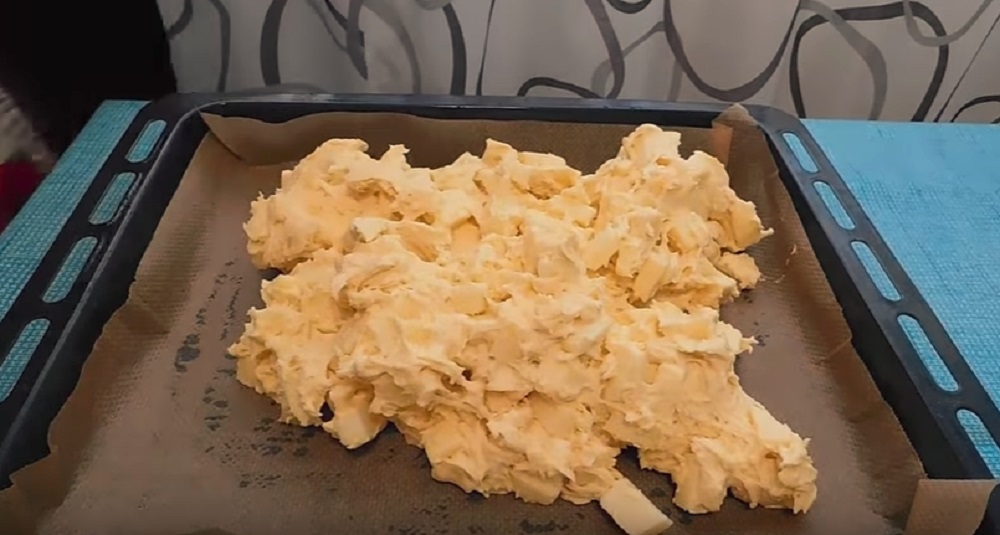 4. Turnăm aluatul într-o tavă de copt tapetată cu unt. Coacem la temperatura de 180 de grade, timp de 30 de minute.