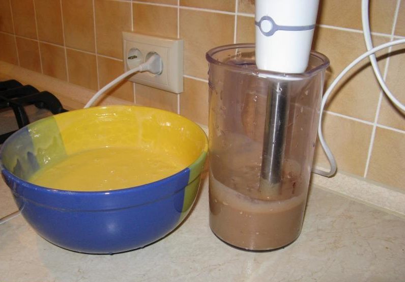 Prima jumătate se lasă deoparte pentru moment, iar cealaltă jumătate se împarte la rândul ei în alte două părți, una mai mare, alta mai mică… În partea mai mare se adaugă 2 linguri de pudră de cacao cernută, iar în cea mai mică un sfert de lingură de cacao și o jumătate de lingură de făină. Amestecați bine…