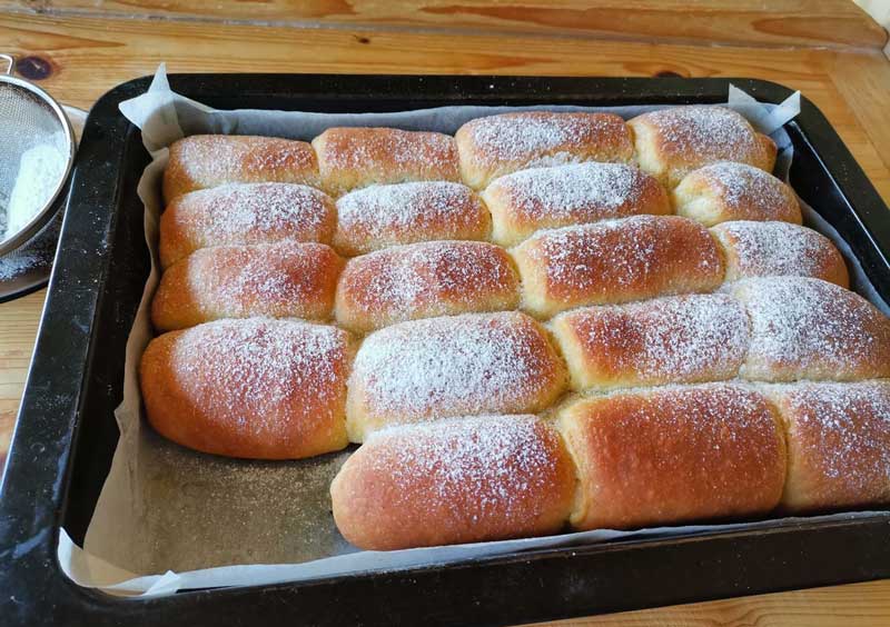 Înainte de servire, presărați chiflele cu zahăr pudră.
