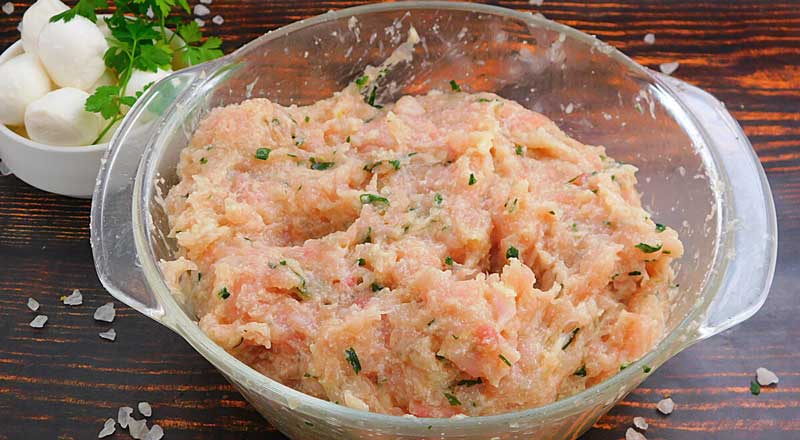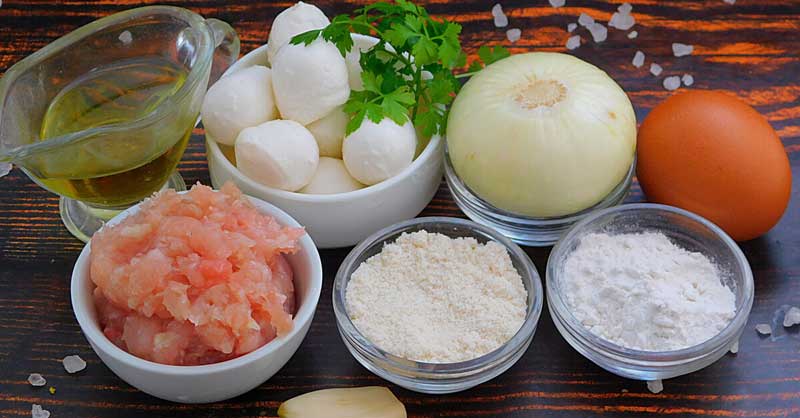 Astăzi pregătim chiftele de pui suculente, aromate și delicioase, cu mozzarella. Ca aspect, acestea pot părea chiftele obisnuite, dar în interior există o surpriză deosebită, sub forma unei umpluturi de mozarella (sau cascaval – depinde ce aveti la indemana).
