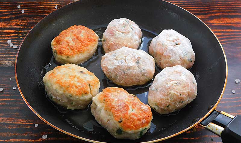 Încinge tigaia cu ulei și puneti chiftelele in uleiul foarte bine incins. Prăjiți chiftelele de pui cu mozzarella pe ambele părți până se obține o crustă aurie.