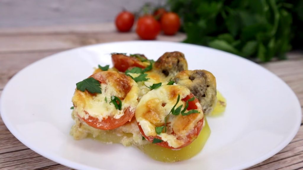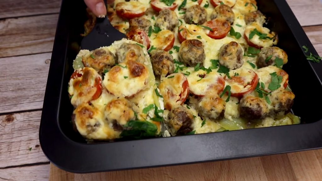 Chifteluțele la cuptor, așezate pe un pat de cartofi și ceapă, sunt o alegere perfectă pentru un prânz sau o cină consistentă și savuroasă. Această rețetă combină aromele simple ale legumelor proaspete cu textura delicioasă a chifteluțelor fragede, totul completat de un sos cremos de smântână și cașcaval.
