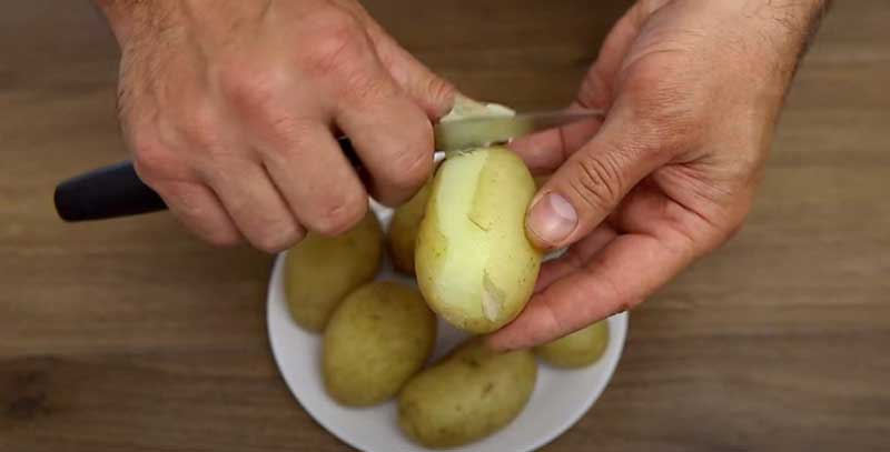Curățați cartofii și fierbeți-i în apă sărată timp de aproximativ 15 minute, până devin semi-moi. După fierbere, scurgeți-i, lăsați-i să se răcească, apoi curățați-i și radeți-i pe o răzătoare mare.