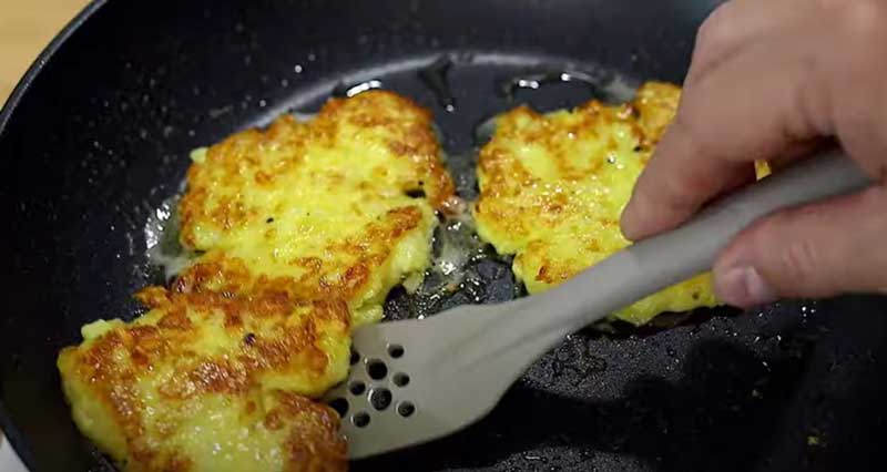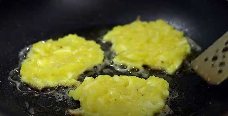Prăjiți pe ambele părți până devin aurii, aproximativ 2-3 minute pe fiecare parte, până când clătitele sunt crocante și bine prăjite.