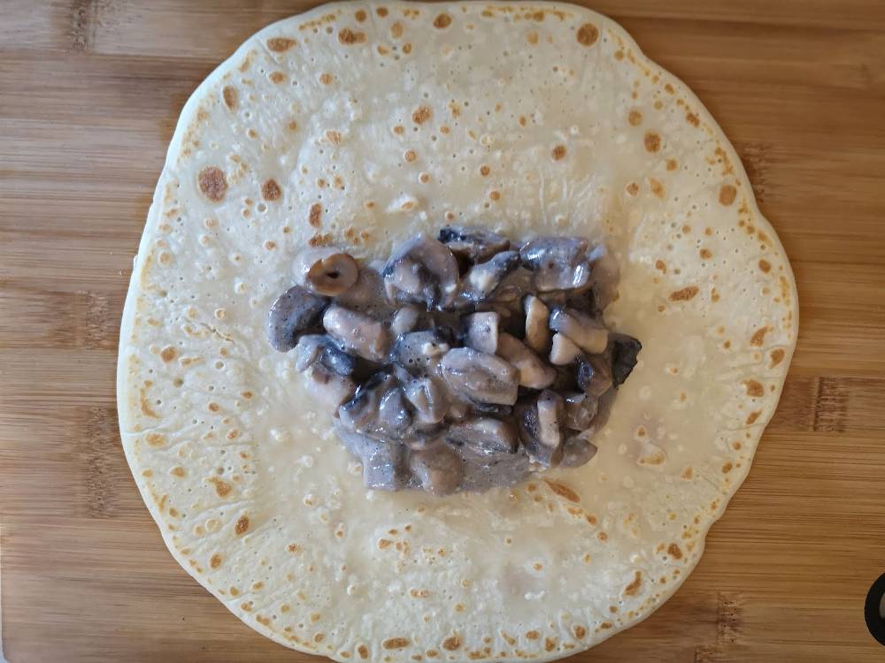 Pune cate putin din umplutura obtinuta pe fiecare clatita.
