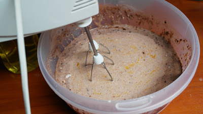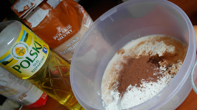 Se lasa faina de graham la inmuiat in apa pentru aproximativ o ora. Dupa ce au trecut cele 60 de minute, se adauga faina de grau, laptele, ouale, cacaua, sarea, zaharul si uleiul. Se amesteca bine pana se obtine un aluat neted.