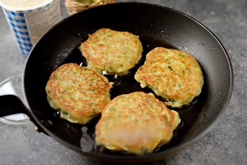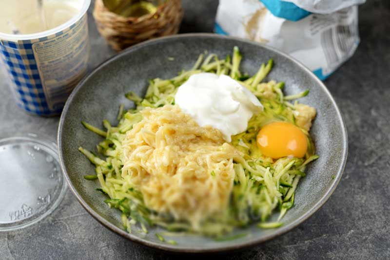 Spălați și uscați un dovlecel mic. Radeți dovlecelul pe răzătoarea mare și stoarceți excesul de lichid.