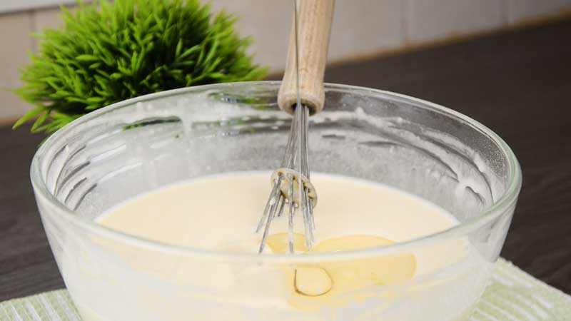 Astfel, aluatul poate fi amestecat bine pentru a nu rămâne cocoloașe în el. Pentru că, dacă adăugați, de exemplu, tot laptele odată, iar apoi făina, atunci aluatul va fi lichid și cu siguranță vă vor rămâne cocoloașe.