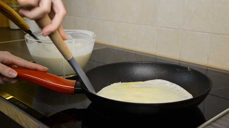 Un alt lucru: cu cât turnați mai puțin aluat pe tigaie, cu atât vor fi mai subțiri clatitele. De exemplu, eu torn cât mai puțin posibil și încerc să-l distribui cât mai uniform.