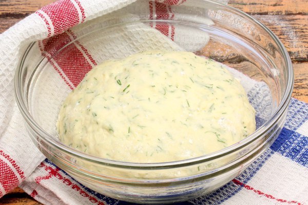 2. Cu ajutorul unui cuțit, tăiem mărunt mărarul, pe urmă îl adăugăm în compoziție. Treptat, adăugăm făina cernută și amestecăm bine până obținem un aluat moale și omogen.