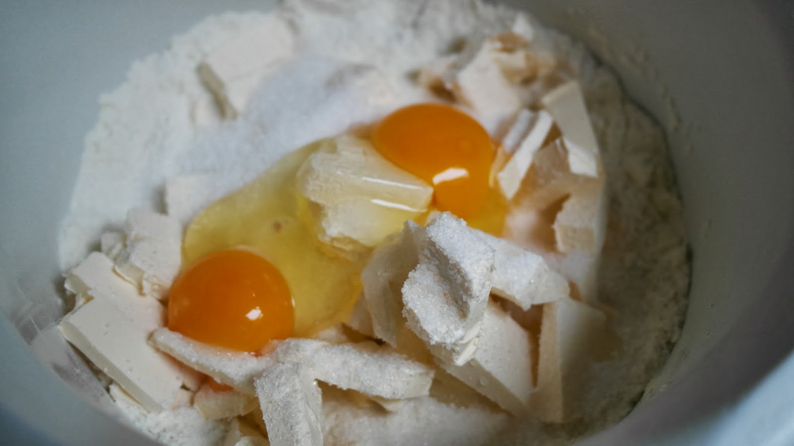 Faramitam drojdia in bolul cu faina, apoi adaugam untul taiat cubulete si zaharul. Adaugam ouale, pe rand, si amestecam bine pentru a se incorpora.