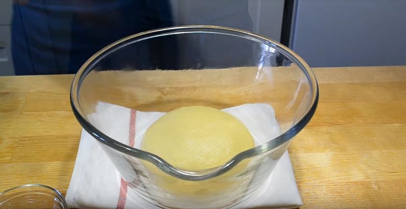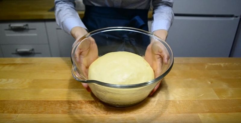 Transferăm bila într-un bol adânc uns cu ulei, acoperim cu folie și lăsăm la dospit 2 ore.