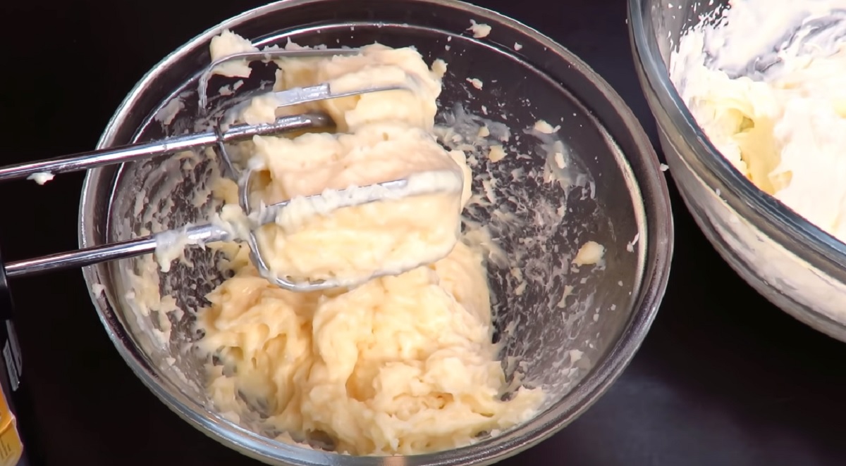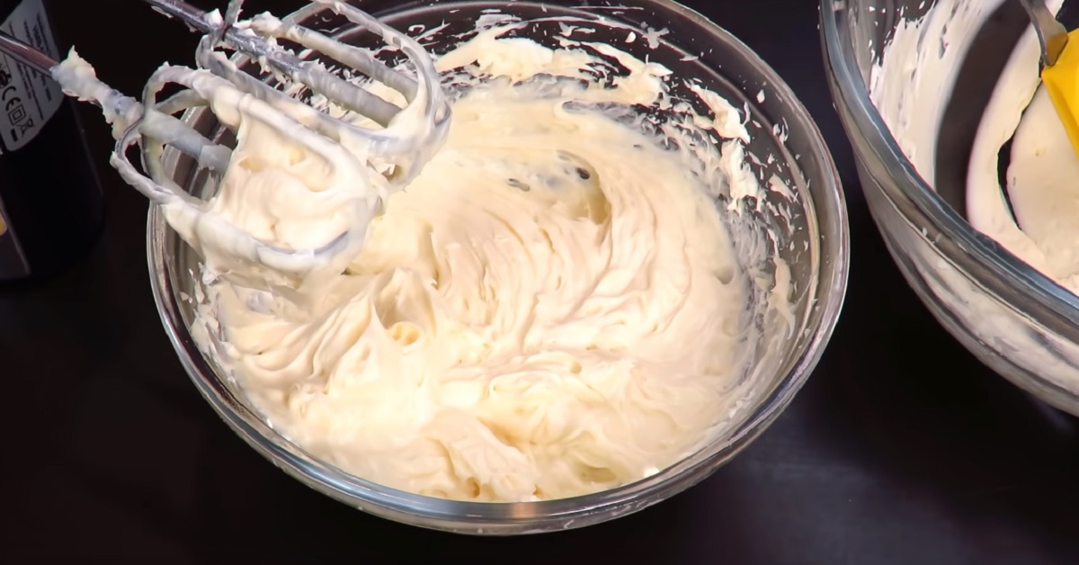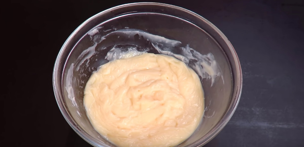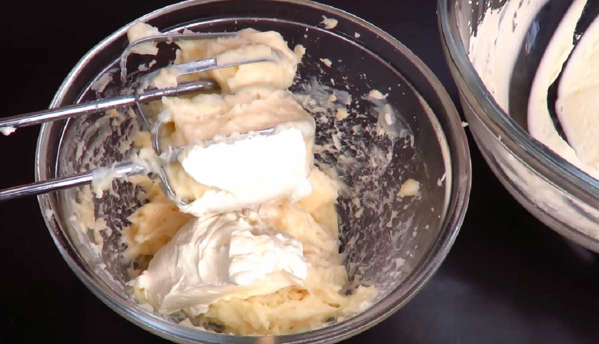 4. Adăugăm crema și amestecăm bine.