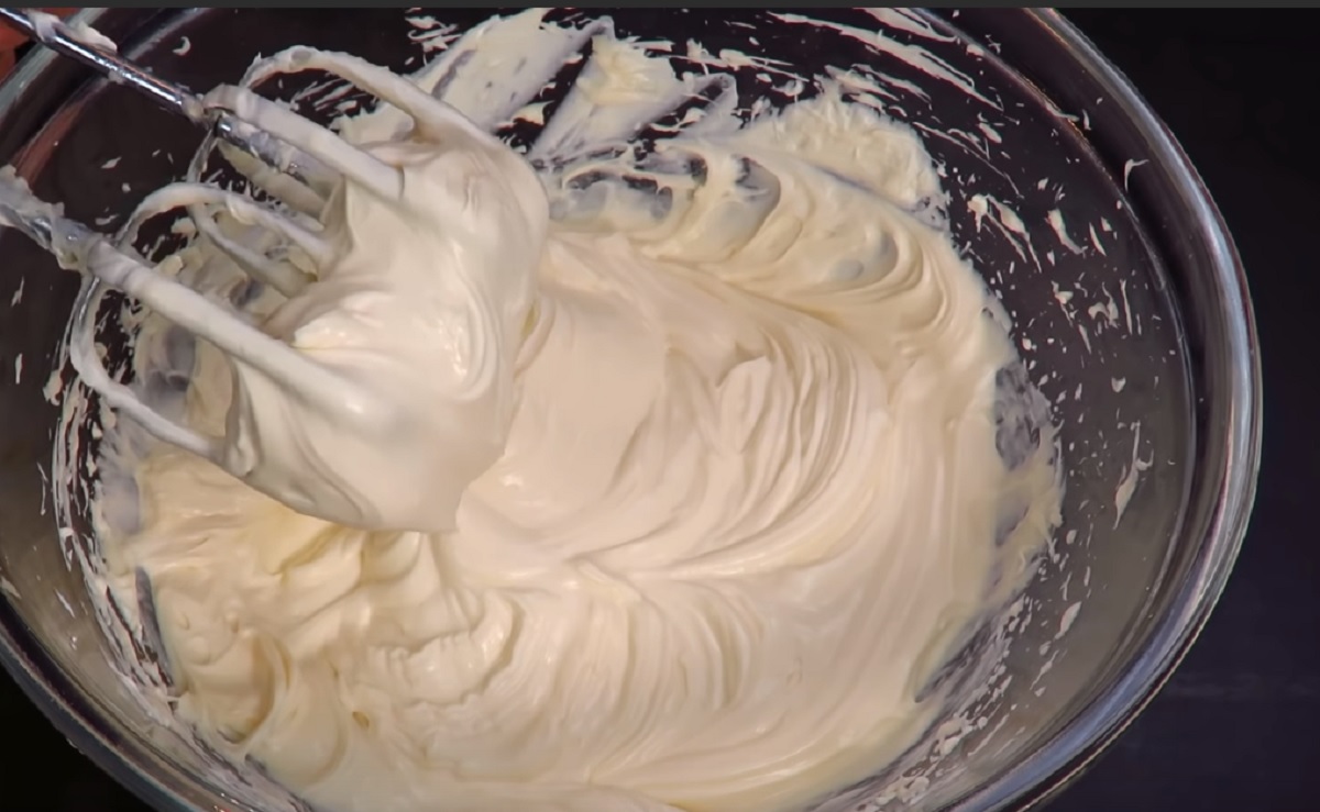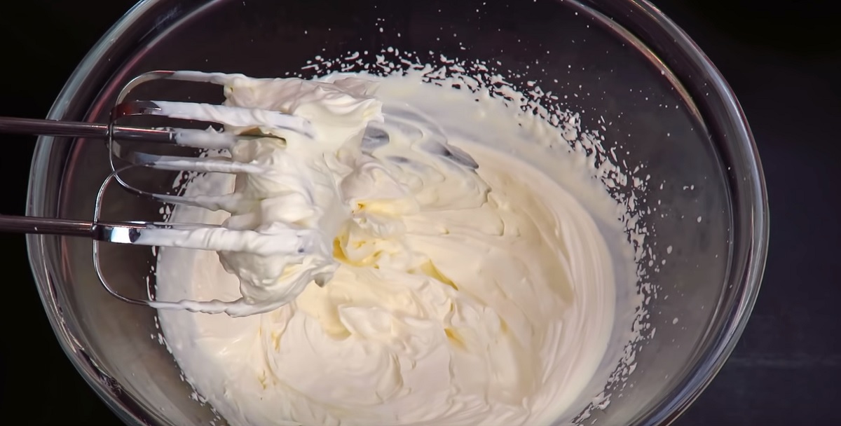 3. Cu ajutorul unui mixer, batem smântâna.