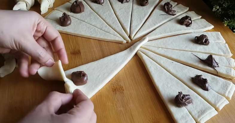 Procesul de rulat și tăiat aluatul în triunghiuri, urmat de umplerea cu ciocolată și coacerea atentă, transformă această rețetă într-un desert deosebit, potrivit pentru orice moment al zilei.