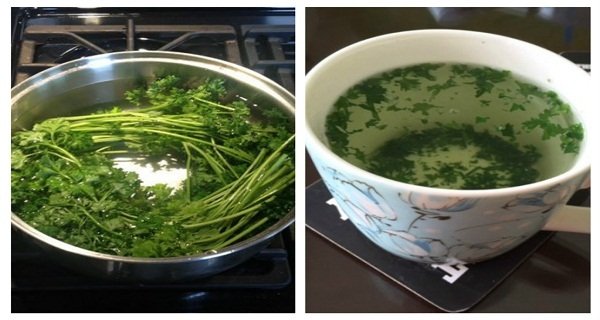 În apa clocotită se adaugă pătrunjelul tocat. Lăsați 20 de minute să se infuzeze. Apoi scurgeți ceaiul. Ceaiul se bea tot, pe parcursul zilei. Doza recomandată în zi este de 1 litru.