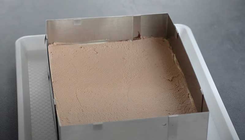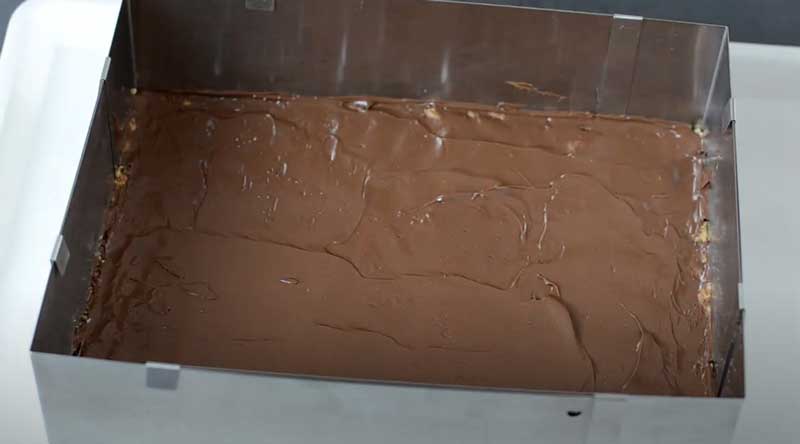 Peste stratul de nutella se pune mousseul de ciocolata alba, dupa care cel cu ciocolata.