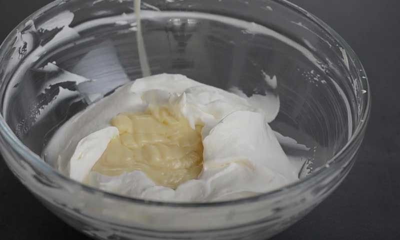 Într-un bol, pregătește cele două pungi de frișcă instant cu 200 ml de lapte, conform instrucțiunilor de pe ambalaj. Asigură-te că frișca este bine bătută și pufoasă.