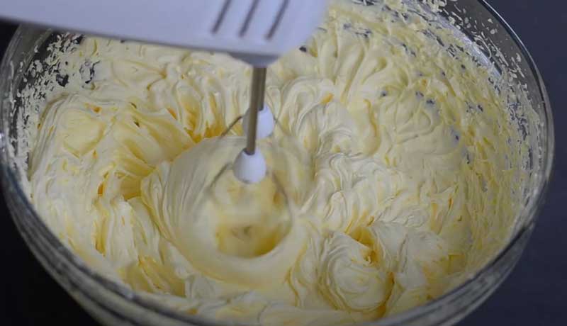 Într-o cratiță se topeste ciocolata alba si separat cea cu lapte. Frisca se imparte in 2 – jumatate se bate cu ciocolata alba si jumatate se bate cu ciocolata cu lapte.