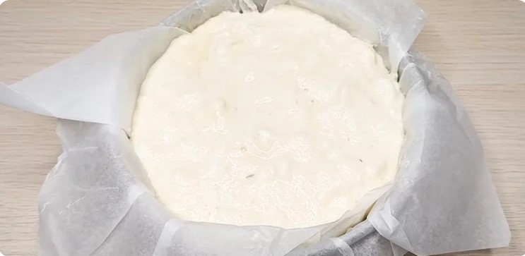 Tapetam o formă de 20 de centimetri cu hartie de copt, o ungem cu unt și turnăm aluatul. Se coace la 180 de grade timp de 30-40 de minute.