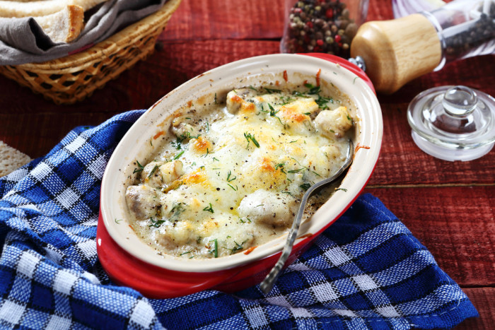 Încălziți ușor smântâna pentru gătit, apoi adăugați usturoiul tocat și crenguțele de cimbru. Fierbeți aproximativ 5 minute, amestecând în permanență pentru a evita fierberea rapidă…
