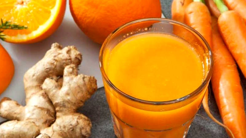 Aceasta bautura din ghimbir, portocala si morcov, contine putine calorii si este o sursa excelenta de nutrienti pentru organism. Se recomanda sa o consumi de trei ori pe saptamana, pe stomacul gol.