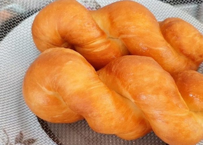 - Întindem o biluță de aluat într-un șnur, pe urmă îl împletim. Procedăm la fel cu aluatul rămas.