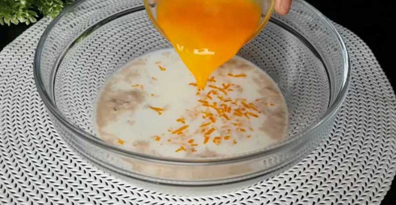 Se dizolvă drojdia, zahărul și zahărul vanilat, în lapte cald. Se adauga coaja de portocala si oul batut si se amestecă cu un tel.