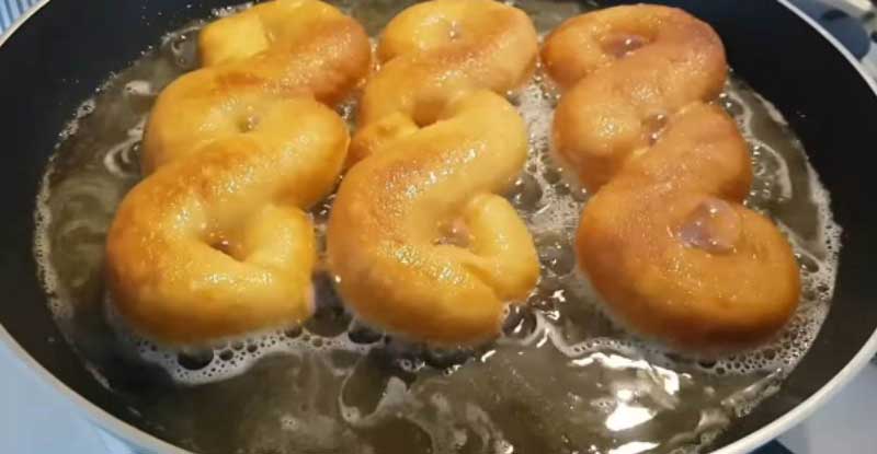 Încinge o cantitate generoasă de ulei într-o tigaie cu fundul gros. Pune gogoșile în ulei împreună cu hârtia, apoi scoate-ti hartia de pe gogosi. Se prăjește la foc mic pe ambele părți, până se rumenesc.